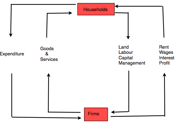 | Describe what is happening | Households provide firms with factors of production In return they expect the rewards or payments of the factor of production Households use incomes to buy goods and services- consumption or expenditure Firms produce and supply the goods and services |