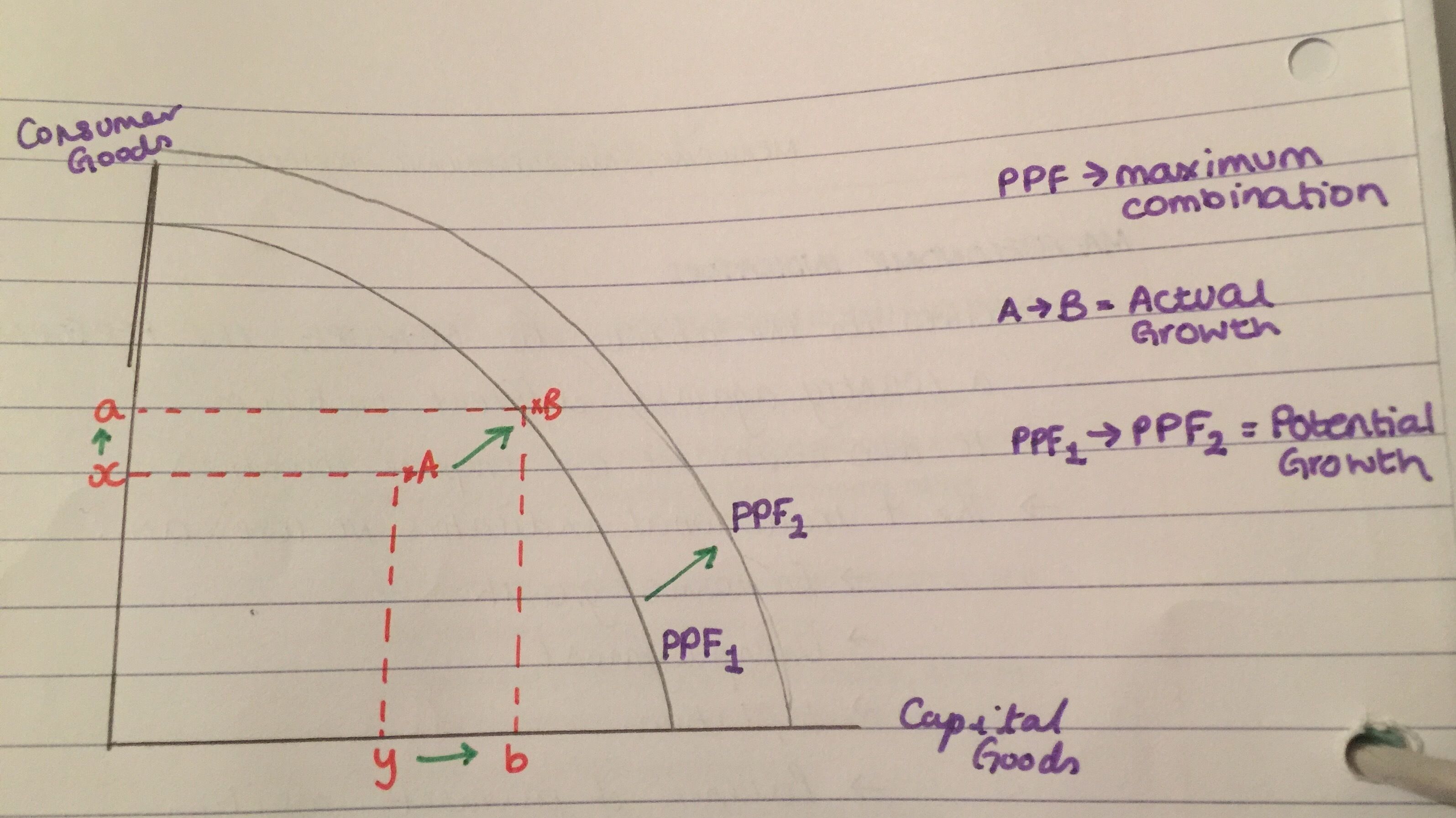 | What is long run economic growth? | Where a country COULD produce more than the previous quarter/year. |