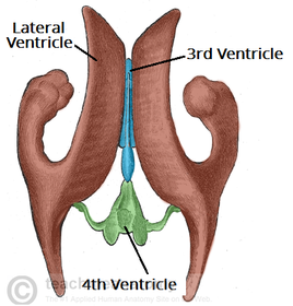 | How many ventricles are part of the Ventricular System. (describe anatomy) | 4: 2 lateral ventricles, the 3rd and the 4th. *hollow cavities that contain cerebrospinal fluid |