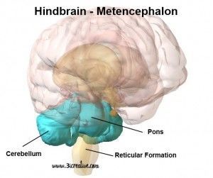 | Functions of the Pons and Cerebellum (2 parts of the Metencephalon). | Pons- sleep and arousal, relays info to and from cortex. Cerebellum- co-ordination of movement. |