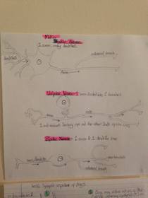 | Describe resting potential. | When the inside of a neuron is 70Mv less than the outside. The K+ inside wants to move outside, and the Na+ and Cl- want to move inside (electrostatic level-). |