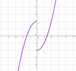 | two parabolas instead of straight lines domain is all real numbers, but it is not continuous range is all real numbers two increasing sections: jump at x=0 power function, degree greater than one only a function if there is an open hole at (0,2) or (0,-2) | |