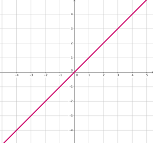| linear, first degree constant rate of change, increasing no concavity domain and range: all real numbers straight line first degree | |