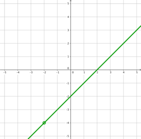 | has a limit where there is no funciton value limit as x approaches -2 is -4 there is no function value at x=-2 | |