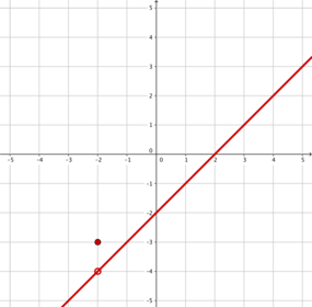 | the only piecewise function as x approaches -2, the limit is -4 but the function value at x=-2 is -3 | |