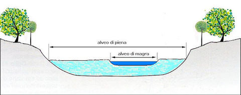 LETTO O ALVEO | Luogo di scorrimento delle acque fluviali. Delimita la larghezza di un fiume. |