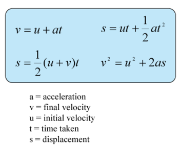 | Kinematics | A study of motion using quantities such as time, distance, displacement, speed, velocity and acceleration. |