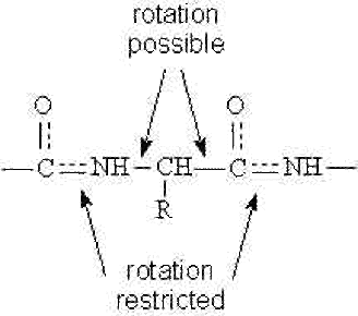 Why is the trans- form most common? | Rotation at C is limited due to steric clashes between R groups |