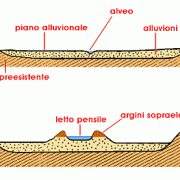 | letto o alveo | Le acque scorrono in un solco chiamato letto o alveo, che disegna la valle fluviale con un profilo a V. |