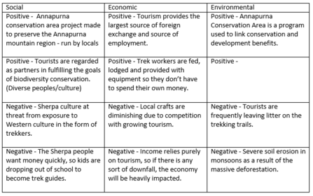 | Economic Effects of Tourism | + A major source of income for many countries/areas. - Impact of environmental disasters on economy. |