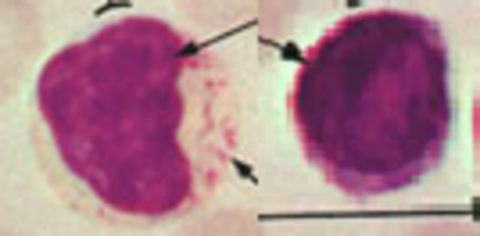 Recognisable Features- Large Lymphocytes | Indented nucleus & more abundant cytoplasm |