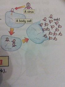 What do viruses do in the body? | Viruses damage and burst the cells in which they reproduce |