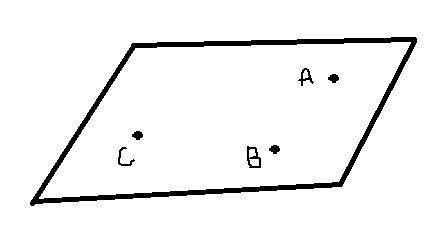 | ثلاثة نقاط غير مستقيمة | أي ثلاث نقاط مختلفة وليست على استقامة واحدة تعين مستويا واحدا فقط |