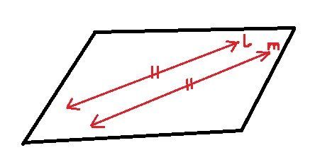 | مستقيمان متوازيان | أي مستقيمان متوازيان مختلفان يعينان مستويا واحد فقط |