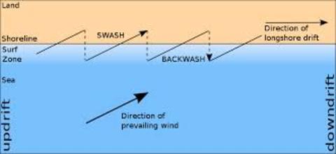 | deposition | when material being carried by the sea water is dropped on the coast |