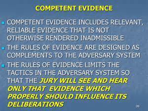 | Competent Evidence | Any evidence that is relevant and reliable and not otherwise excludable |