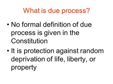 | Due Process | The minimum procedural protections courts must afford those charged with crimes; guaranteed by the fifth and fourteenth Amendments to the U.S. Constitution |