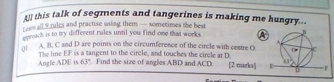 | Triangle JKL has side JK=7 cm, side JL=11 cm and angle JLK= 32. Find angle JKL | Angle JKL= 56.4 (3 s.f) |