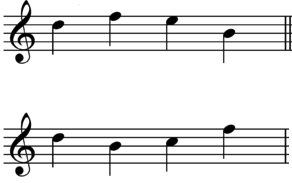 | If the measure on the left is the original melody, the measure on the right is an example of ... | Retrograde |