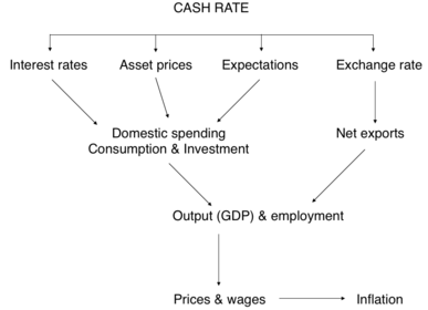 | What do changes in interest rates affect? | - saving and investment decisions - cash flow of households and firms - wealth and asset prices - exchange rate |