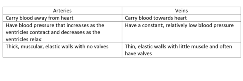 Compare arteries and veins (table) | |