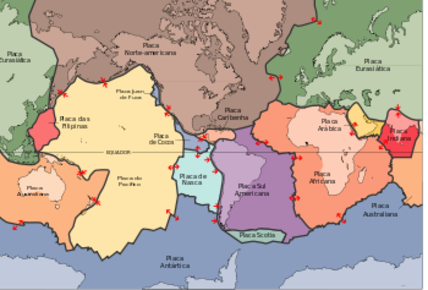 | A litosfera encontra-se fragmentada em várias placas tectónicas e estas deslocam-se sobre a astenosfera.2 |