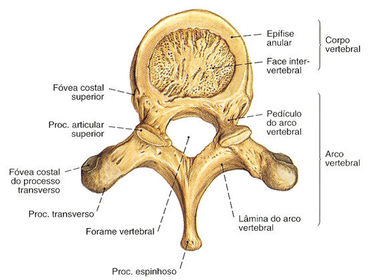 | Quantos processos contém a vertebra? | 3: Proceso espinhoso, processo transverso e processo articular |