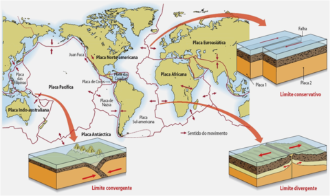 Placas Tectónicas No contacto entre duas placas, podem ocorrer dois tipos de distintos de movimento: Afastamento relativo das duas placas ou aproximação relativa. |