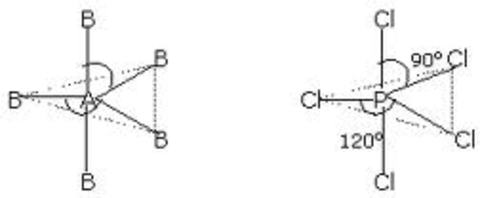 -5 Bonding pairs -90' and 120' -TRIGONAL BIPYRAMIDAL |