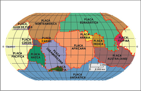 | A Litosfera é a camada sólida mais externa de um planeta rochoso é constituído por rochas e solo. E está dividida em Placas Tectónicas. |
