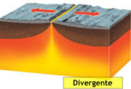 Limites divergentes formam-se quando duas placas afastam-se devido a convecção mantélica. No fundo do mar, o limite entre placas em separação é marcado por uma cordilheira oceânica que exibe vulcanismo basáltico ativo, terremotos superficiais e falhamentos normais provocados por forças tensionais criadas pela separação entre as duas placas. As Cordilheiras Meso-Atlântica e Meso-Pacífica são exemplos deste tipo de limite de placas no fundo mar. |