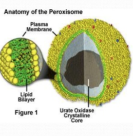 | Peroxisome | Enzymes for Peroxisomes are produced at free ribosomes and transported by carrier proteins. Peroxisomes absorb and break down fatty acids and other organic compounds. This produces hydrogen peroxide, then broken down by catalase into oxygen and water. |