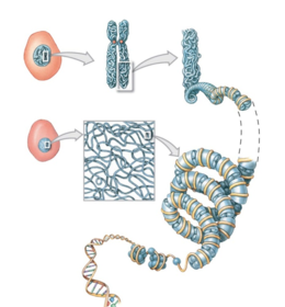 | DNA / Chromosomes | In dividing cells, DNA is tightly coiled around histones to form chromosomes. |