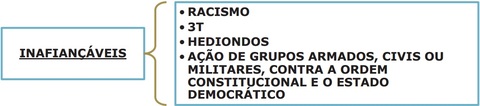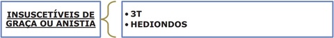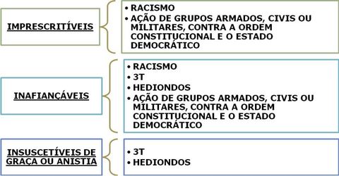 | Quais as penas imprescritíveis, inafiançáveis, insuscetíveis de graça e anistia? DICA( 3T e HEDIONDOS NÃO TEM GRAÇA) | |