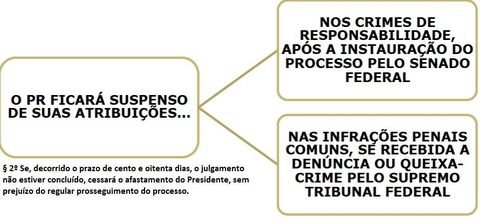 | Quando ficará o presidente suspenso de suas atribuições? Durante o tempo de ? | |