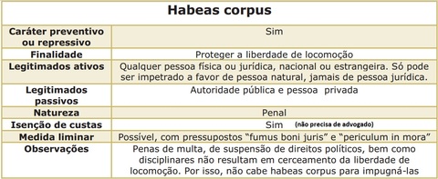 | O que é o habeas corpus? Qual sua finalidade? Quem pode impetrar?Qual o seu custo? |