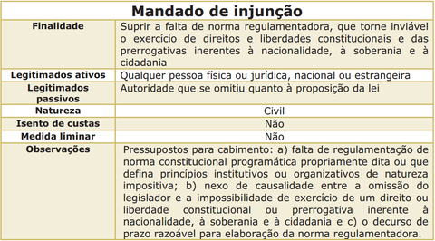 | Qual a finalidade do mandado de injunção? quem pode impetrar? é gratuito? precisa de advogado? |