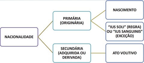 | São brasileiros natos...? | a) os nascidos na República Federativa do Brasil, ainda que de pais estrangeiros, desde que estes não estejam a serviço de seu país; b) os nascidos no estrangeiro, de pai brasileiro ou mãe brasileira, desde que qualquer deles esteja a serviço da República Federativa do Brasil; c) os nascidos no estrangeiro de pai brasileiro ou de mãebrasileira, desde que sejam registrados em repartição brasileira competente ou venham a residir na República Federativa do Brasil e optem, em qualquer tempo, depois de atingida a maioridade, pela nacionalidade brasileira; Menor, filho de brasileiro que venha morar no Brasil é considerado nato até completar a maioridade, depois tem que requerer. |