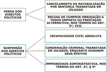 | Qual a diferença entre perda e suspensão de direitos políticos?Em quais hipóteses elas acontecem? | |