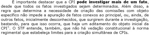 | Pode a CPI investigar mais de um fato? Podem existir mais de uma CPI simultaneamente? |