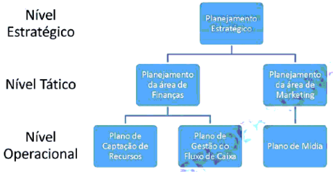 Nível Estratégico → Diretoria/Dirigentes ▼ • Planejamento Estratégico → Global • Objetivos → Gerais e Abrangentes • Foco/Tempo → Longo Prazo | Nível Gerencial/Tático → Gerência ▼ • Planejamento Tático → Departamental • Objetivos → Própria área/depart •Foco/Tempo → Médio Prazo → Desdobramento do Plan Estrat |