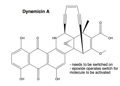 | STRATEGY 4 (1 points to be made) | CLEAVING OF DNA -DNA cutters cleave strands of DNA and prevent enzymes to fix it - DNA radicals appear on the structure + react with oxygen to form peroxy species which irreversibly change the DNA - "enedyiene" systems undergo Bergmann rearrangement to form a diradical |