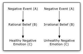The cognitive approach to explaining depression | Ellis' ABC model The key is that depression lay in irrational beliefs Model: (Two streams) A refers to activating event B refers to belief, rational or irrational C is the consequence, positive or negative Irrational beliefs, lie with mustabatory thinking, (i.e. i must be liked) which causes depressions and disappointment |