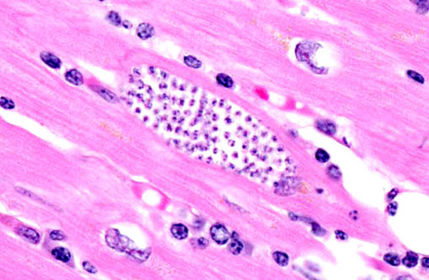 | TRYPANOSOMA CRUZI Amastigoodid Histoloogiline preparaat nakatatud hiire südamelihaskoest | |