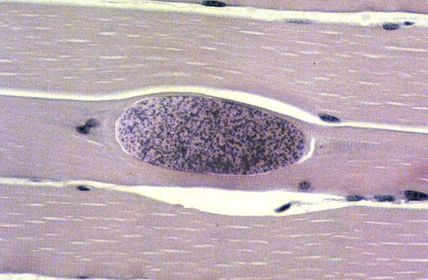 | SARCOCYSTIS SP. Koetsüst bradüzoiitidega Histoloogiline preparaat vöötlihaskoest | |