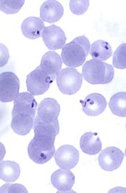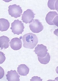 | PLASMODIUM VIVAX Trofozoiidid (sõrmus- ja amöboidne staadium) Vereäigepreparaat | |
