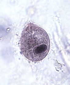 | TRICHOMONAS VAGINALIS Trofozoiidid Värvitud vaginaalsekreediäie | |