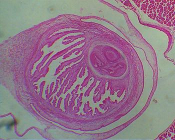 | TAENIA SOLIUM - nookpaelussi vastsejärk Tsüstitserk vöötlihaskoes Histoloogiline preparaat | |