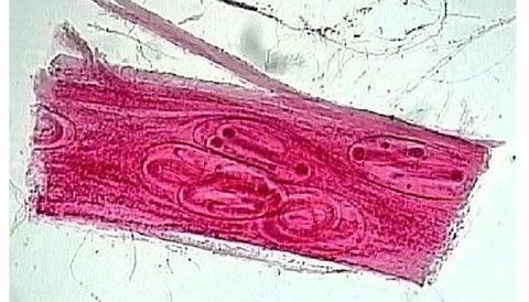 | TRICHINELLA SPIRALIS - keeritsuss Kapseldunud vastsed vöötlihaskoes Histoloogiline preparaat | |