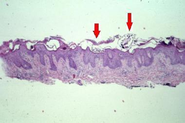 | SARCOPTES SCABIEI - süüdiklest Munad ja vastsed nahas Histoloogiline preparaat nahast | |